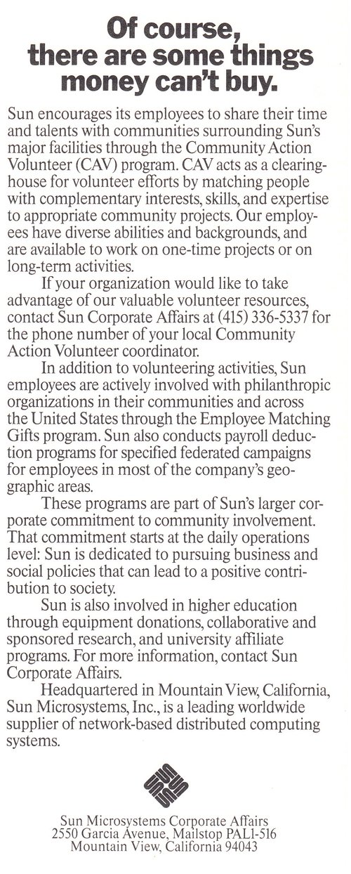 When Sun Microsystems launched its community involvement programs, employees needed to know about giving and volunteering opportunities; nonprofits needed to know how to apply for funding; and legislative, educational, and community organizations needed to know what the company was doing to build local relationships.